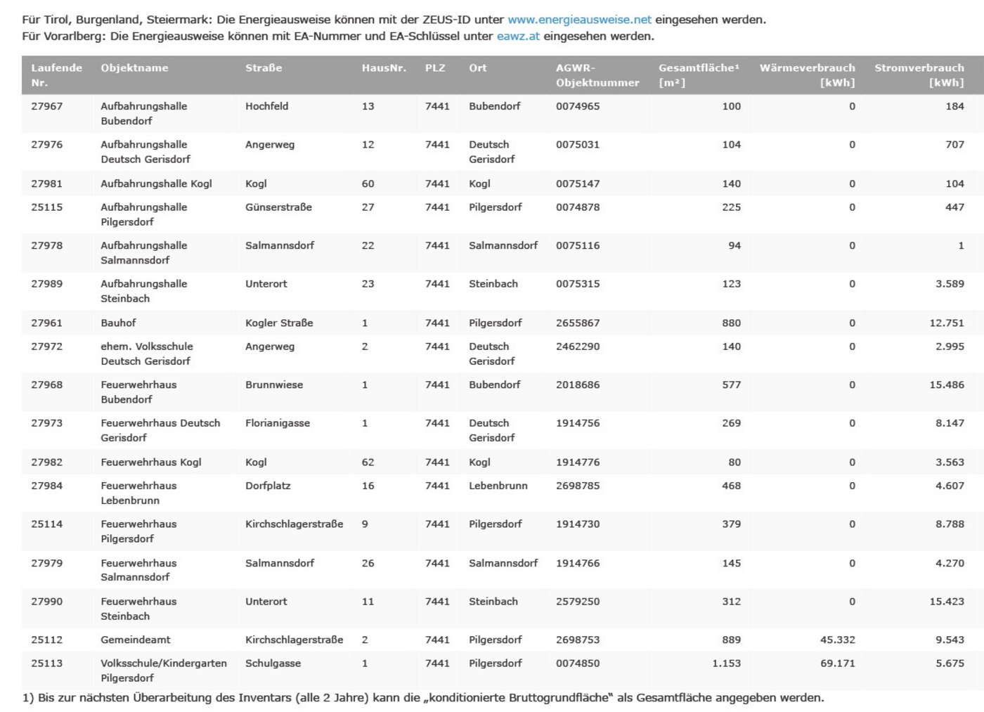 Im Zuge der Umsetzung der Energieeffizienz-Richtlinie III (EED III – Richtlinie (EU) 2023/1791) veröffentlicht die Gemeinde ihr Gebäudeinventar.